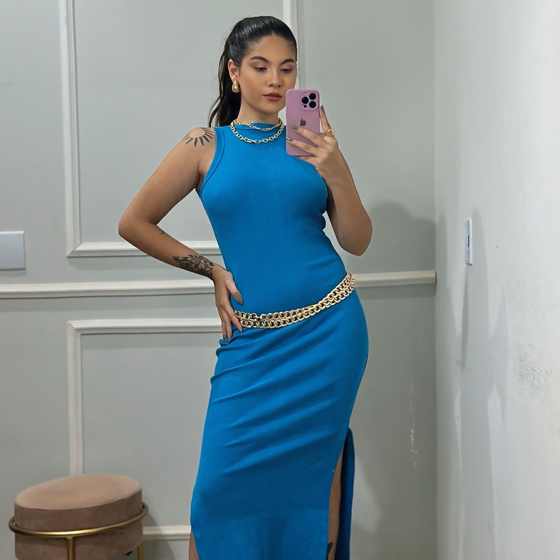 Conheça o nosso Vestido Ribana Regata Algodão Mid, ideal para quem busca estilo e conforto em uma só peça. Confeccionado em algodão com ribana de alta qualidade, esse vestido oferece um ajuste perfeito ao corpo e um toque suave na pele. Com comprimento midi, ele é versátil para conforto casual e também mais elegante, compondo looks modernos e sofisticados.